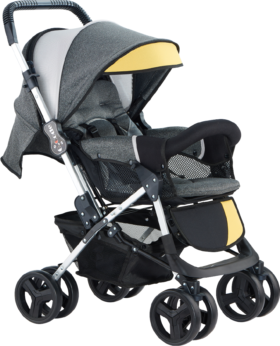 把嬰兒車座位前端的脚踏板拉上最高的位置,它的座椅便會變成ー個大提籃,嬰兒便可在